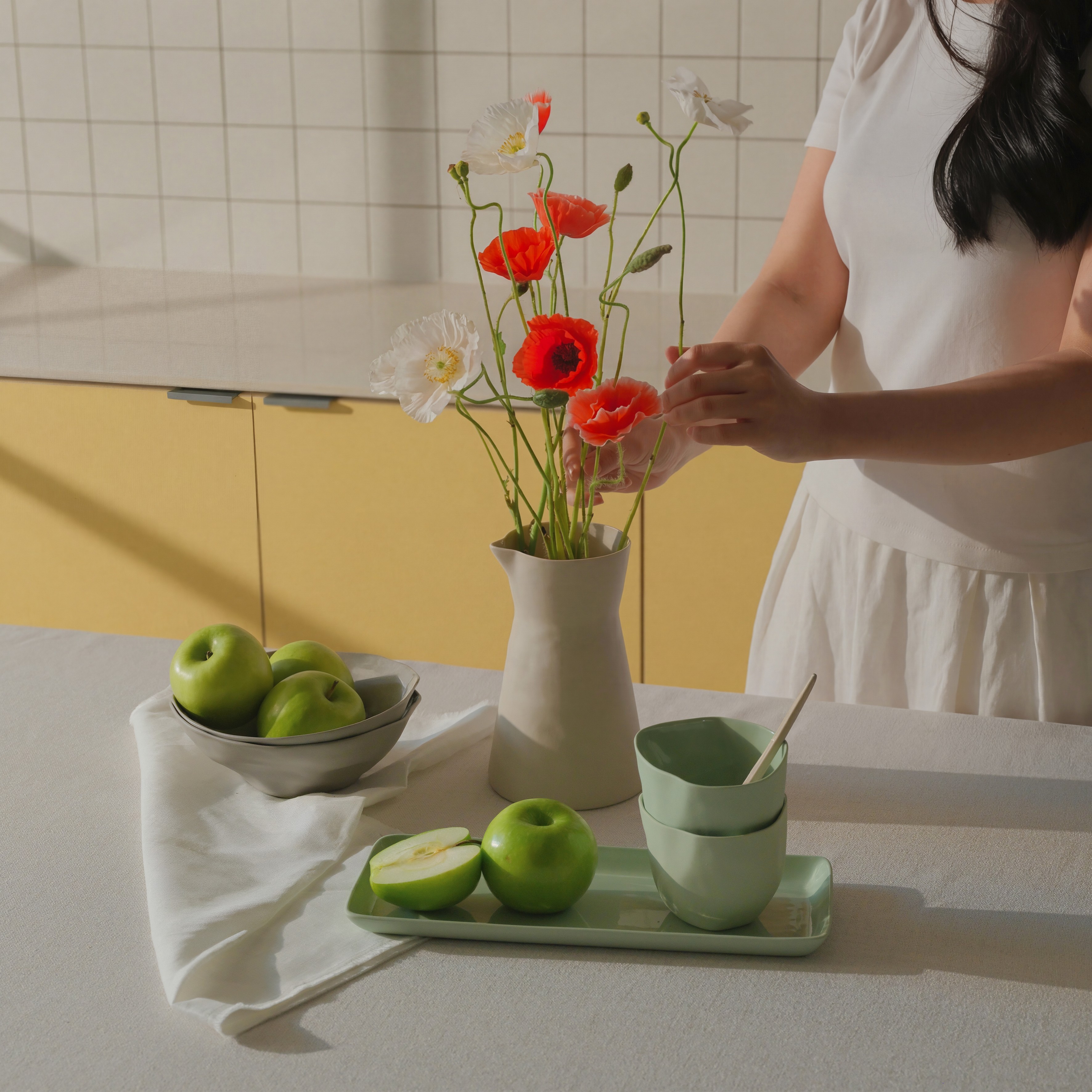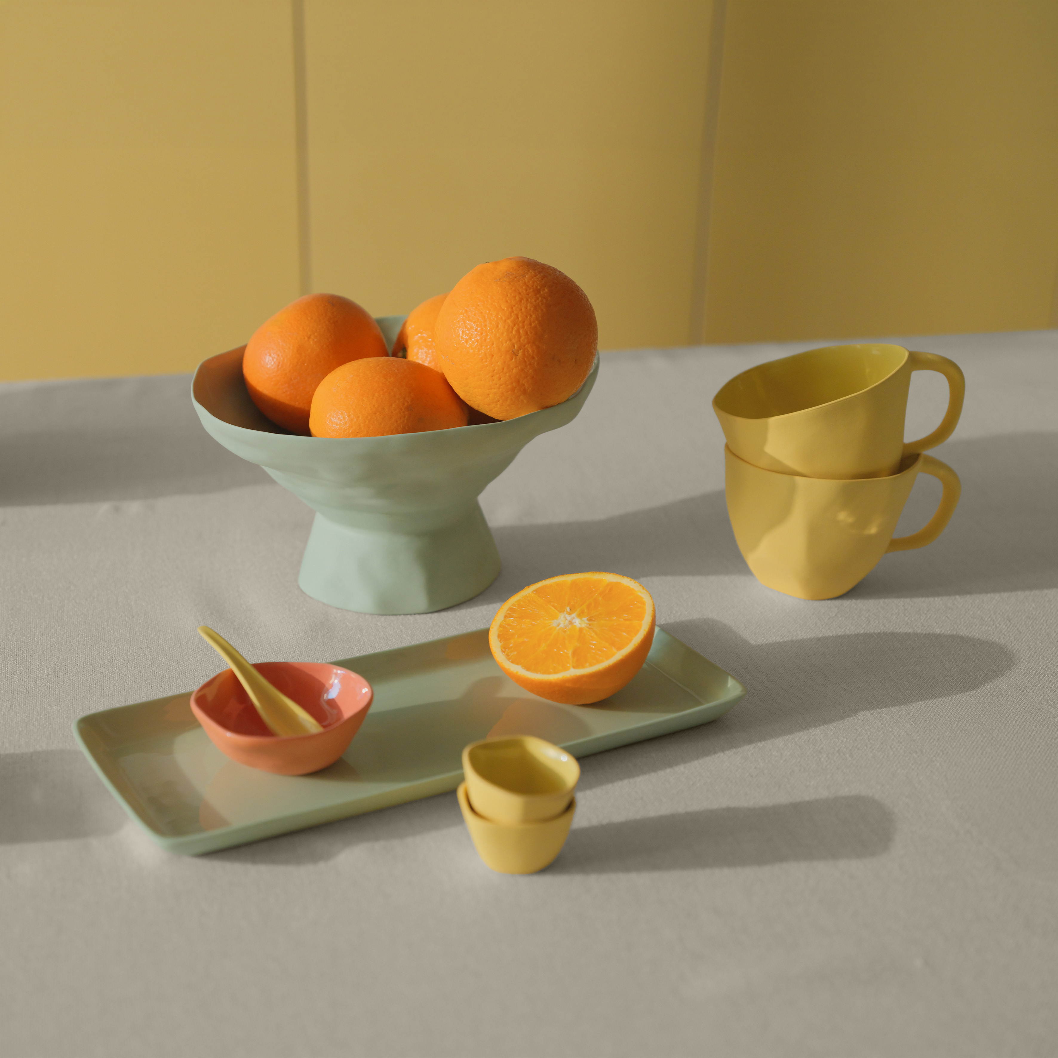 summer days begin as if the summer beam is a gateway into a dream world, this concept's color palette promises to warm up your kitchen by its lively shades of soft celadon, cheerful yellow and orange.