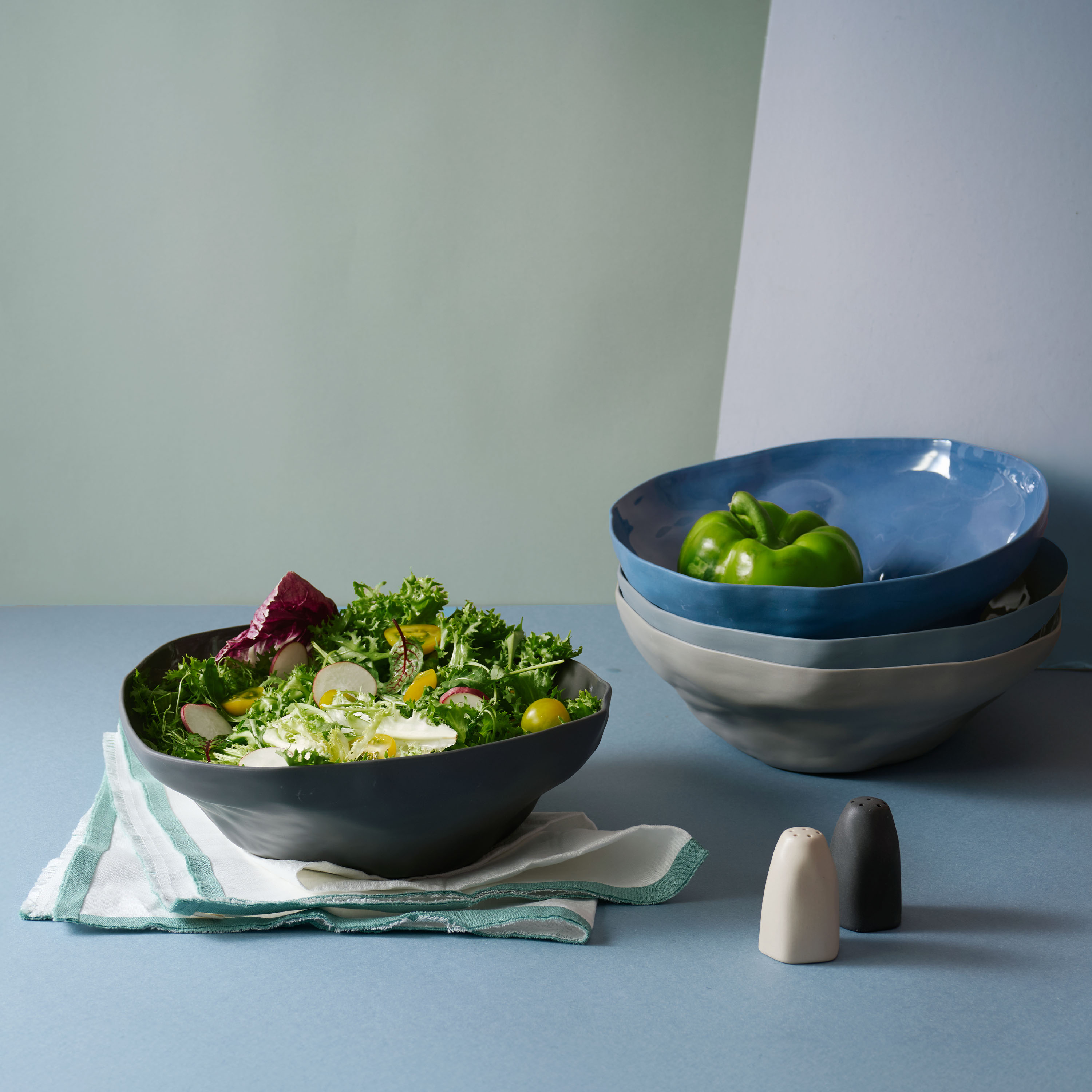 A large bowl designed with free-style rim, glossy finish inside and matte rough outside. Appropriate for soups or pho, perfect for both Oriental and Western cuisine.