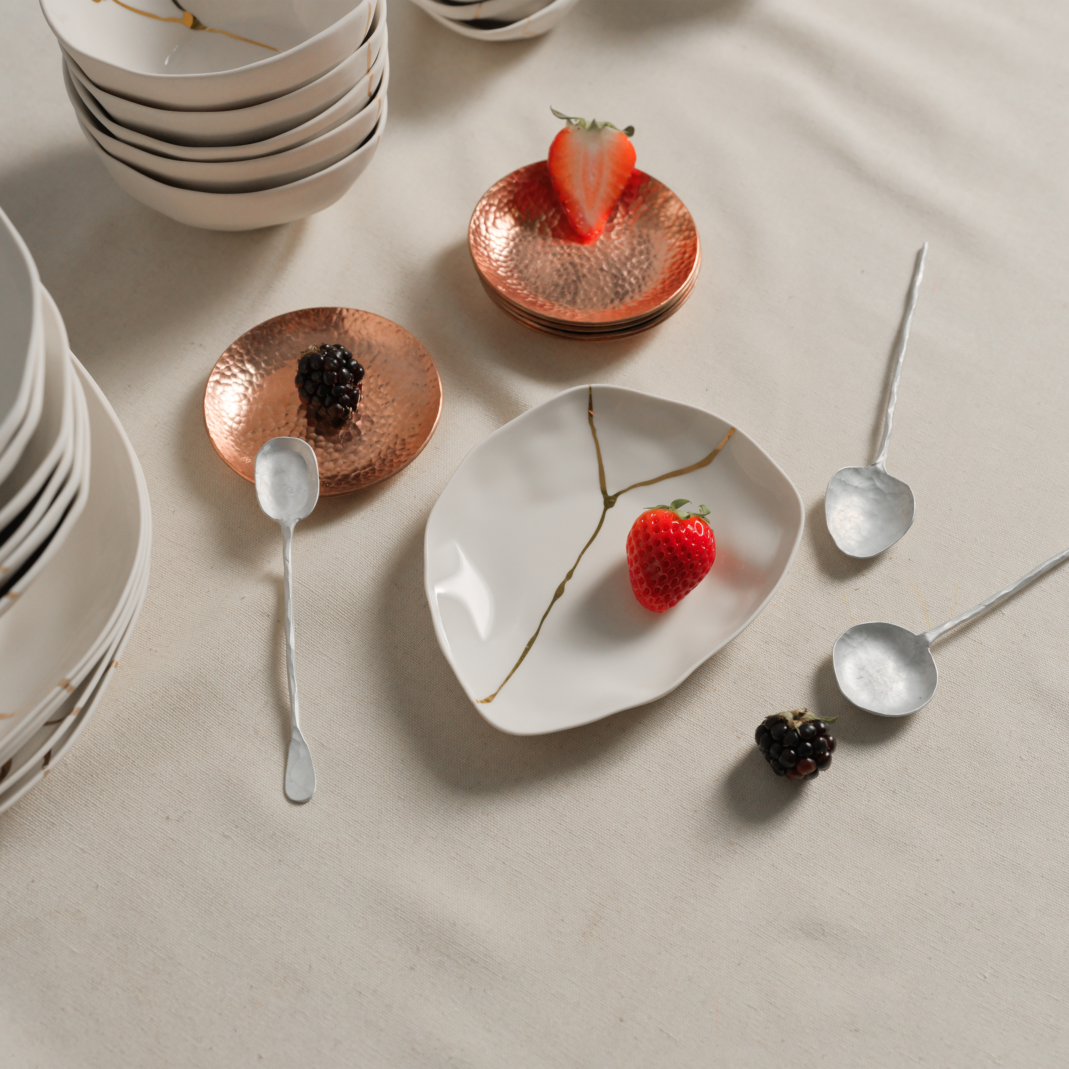 Small plate with irregular leaf shape and nostalgic 14K golden rim. Used for sauces, desserts, or saucer for your bowl and cup.