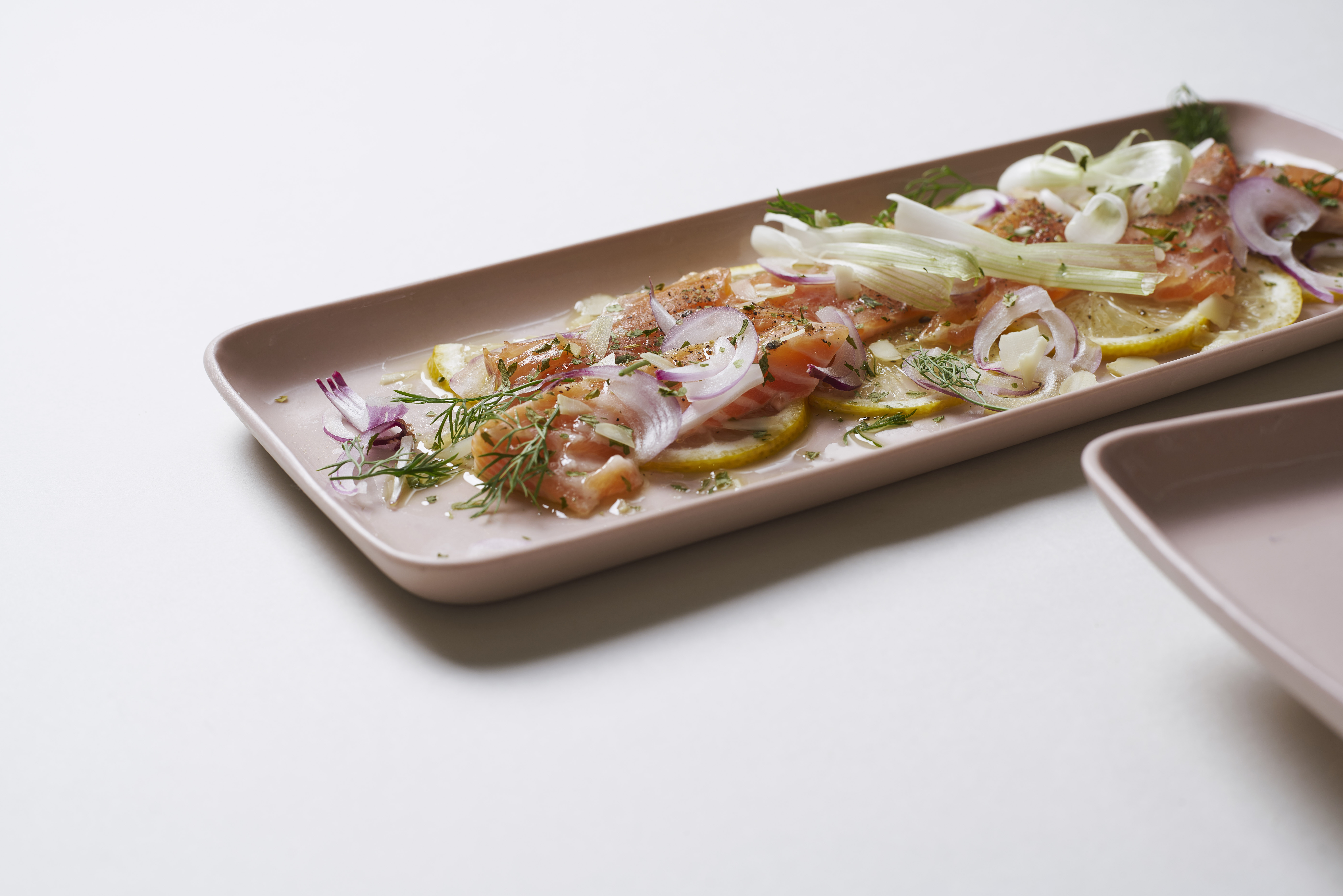 Ceramic tray with glossy finish inside, matte rough outside can be used as appetizer serving plate or for sushi and rolls.