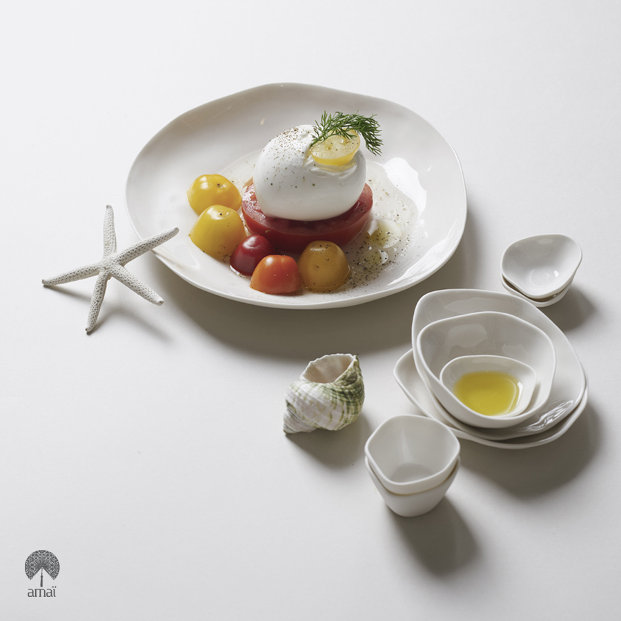 Dĩa gốm tròn được hoàn thiện tráng men bóng một mặt bên trong. Những biến thể do bản chất thủ công luôn hiện hữu. Sử dụng cho món khai vị, tráng miệng hoặc là dĩa lót cho chén và ly gốm.