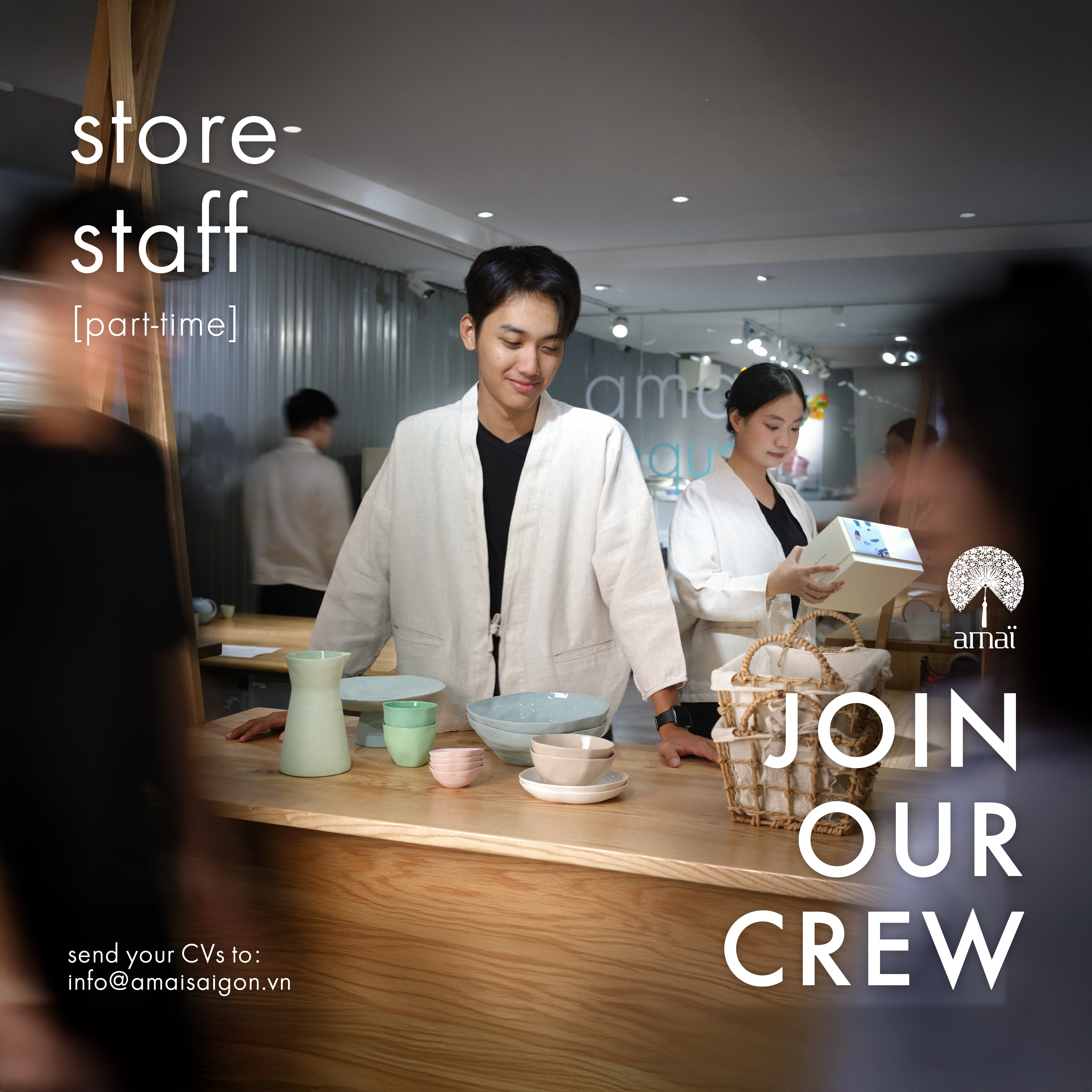 Welcome to amaï career official page! We're looking for new members to join our store crew and back-office, view the JDs of our open positions down below: