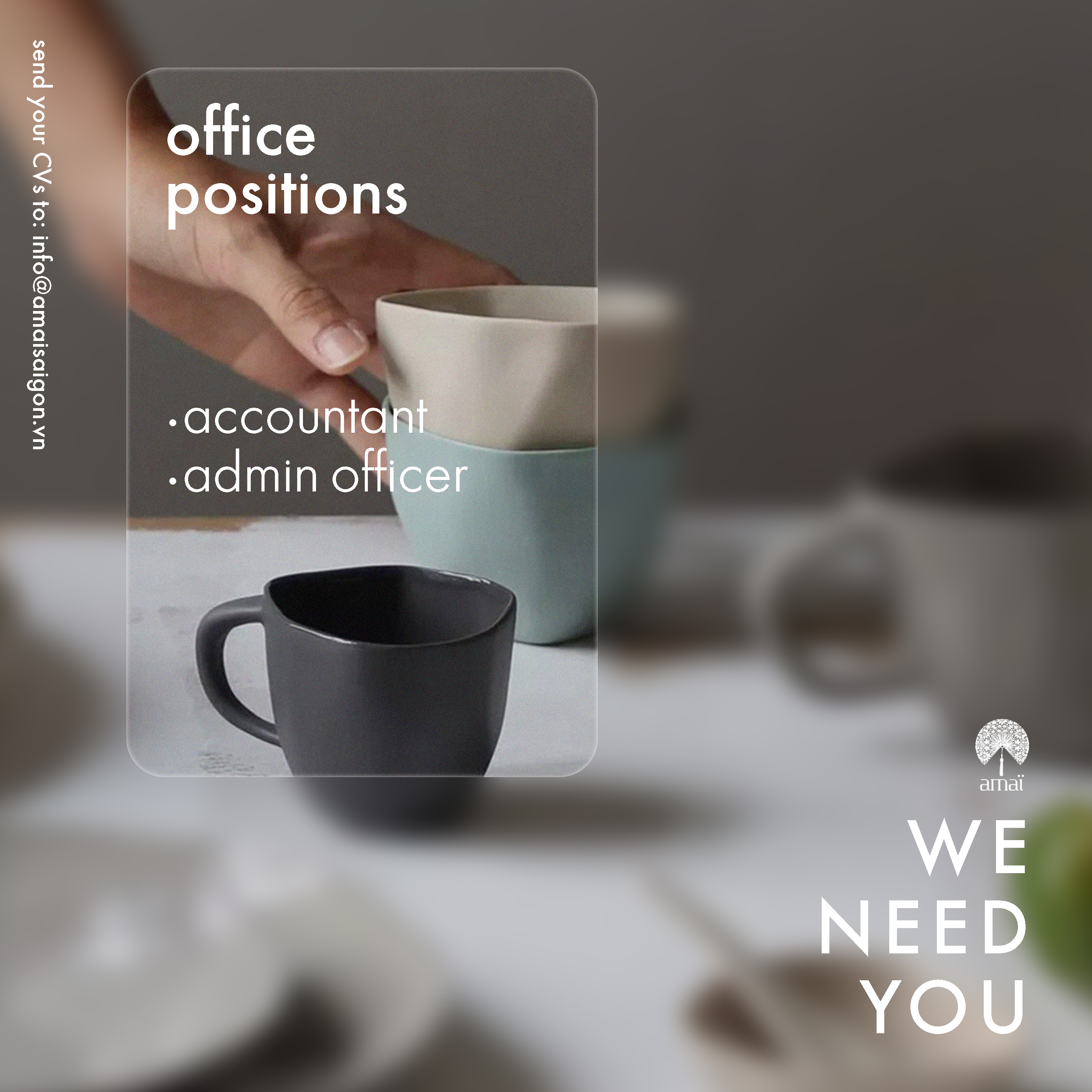 Drop your CVs at our email: info@amaisaigon.vn with subject ''[Position applied] - [Full name]''